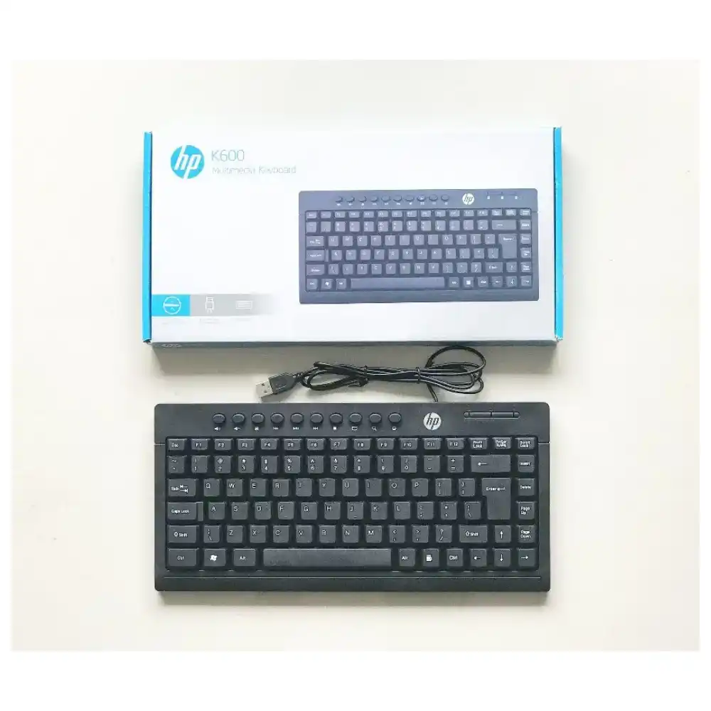 The HP K600 Mini Wired Keyboard is a compact and reliable keyboard designed for office work, home use, students, and business environments in Bangladesh. Manufactured by HP, this keyboard offers comfortable typing, durable keys, and plug-and-play USB connectivity, making it ideal for everyday computing needs.